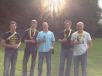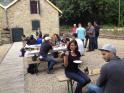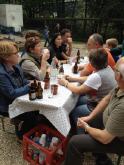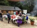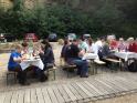 Gegen 12.30 Uhr trafen sich dann alle Gruppen bestens gelaunt und hungrig am Blockhaus wieder. In entspannter Atmosphäre und mit jeder Menge neuem Gesprächsstoff ausgestattet, wurden sie zuerst mit dem bereits erwähnten „Platzkonzert“ der „Äußerst Takt-voll“-Gruppe im wahrsten Sinne des Wortes von den Sitzen gerissen. Danach wurde sich ausgiebig dem reichhaltigen Buffet zugewandt. Im Anschluss konnten wir in geselliger Runde das gute Wetter im Freien genießen und beim Lagerfeuer noch einige Stunden gemütlich „klöhnen“. Währenddessen wurden auch noch drei tolle Preise unter den Teilnehmern verlost - Gratulation den Gewinnern und vielen Dank dem uneigennützigen Spender!