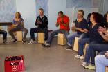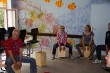Beim Programm „Äußerst Takt-voll“ ging es ins Jugendgästehaus, wo alle mit Holztrommeln ausgestattet mal endlich richtig „auf die Pauke“ hauen konnten. Dem Dozenten Joe Kaster gelang es dabei, verborgenes musikalisches Talent und vor allem ungeahntes Taktgefühl bei allen Teilnehmern so zu koordinieren, dass am Ende der ca. 2-stündigen “Probe Session“ bereits ein gemeinsames Konzert von allen Teilnehmern des Helferfestes bestaunt und anerkennend beklatscht werden konnte.