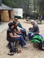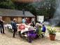 Gegen 12.30 Uhr trafen sich dann alle Gruppen bestens gelaunt und hungrig am Blockhaus wieder. In entspannter Atmosphäre und mit jeder Menge neuem Gesprächsstoff ausgestattet, wurden sie zuerst mit dem bereits erwähnten „Platzkonzert“ der „Äußerst Takt-voll“-Gruppe im wahrsten Sinne des Wortes von den Sitzen gerissen. Danach wurde sich ausgiebig dem reichhaltigen Buffet zugewandt. Im Anschluss konnten wir in geselliger Runde das gute Wetter im Freien genießen und beim Lagerfeuer noch einige Stunden gemütlich „klöhnen“. Währenddessen wurden auch noch drei tolle Preise unter den Teilnehmern verlost - Gratulation den Gewinnern und vielen Dank dem uneigennützigen Spender!